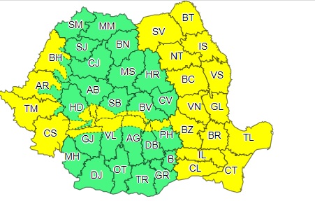 ANM a emis o averizare cod galben pentru miercuri, 18 mai 2022, între orele 06.00 – 21.00, de ploi și intensificări susținute ale vântului.