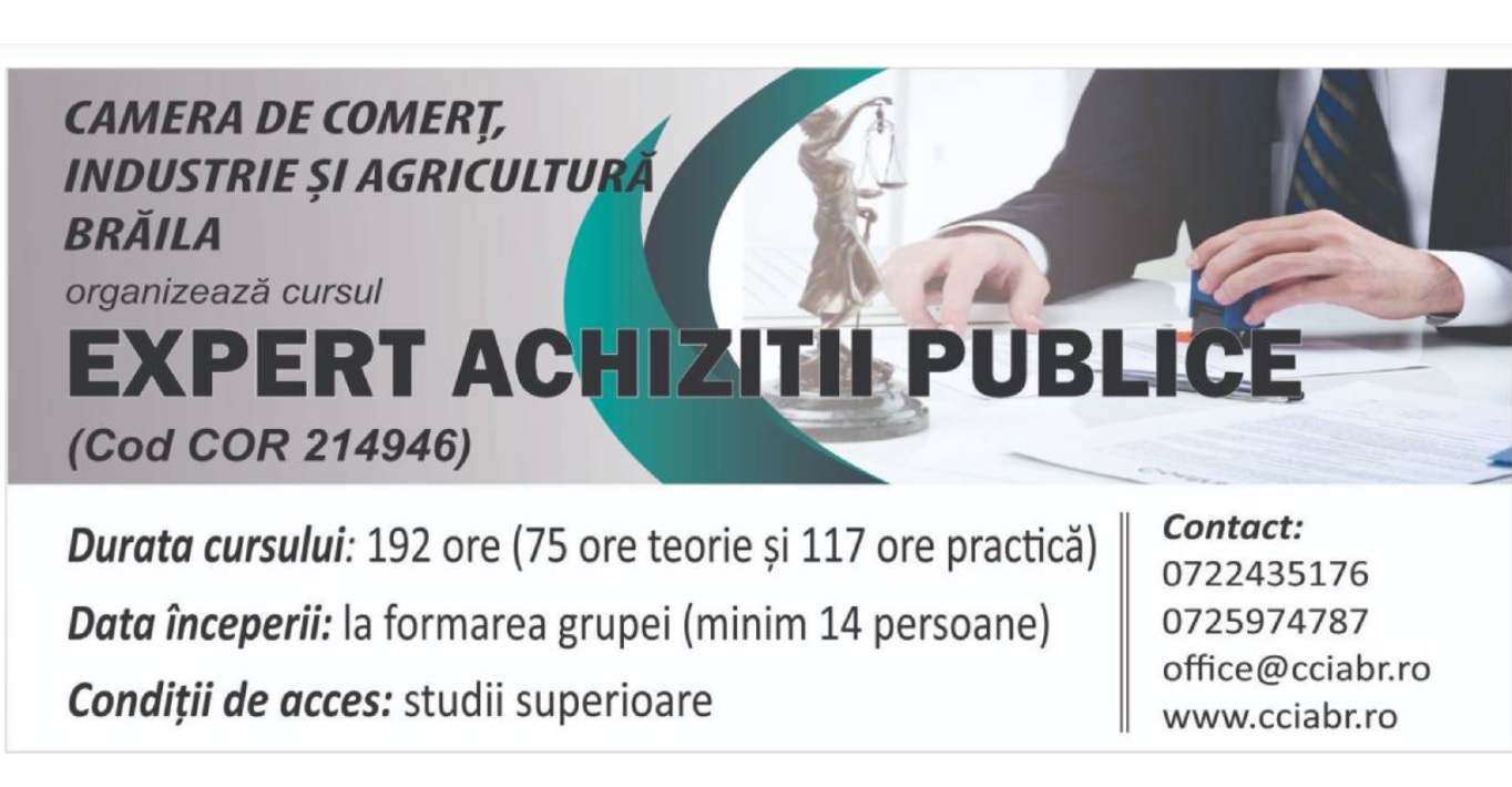 • CCIA Brăila organizează Curs Expert achiziții publice în format fizic 20/04/2026