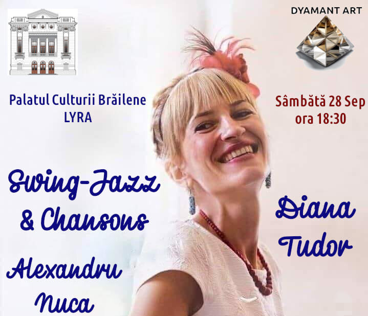 Sâmbăta 28 Septembrie 2024, la ora 18.30, iubitorii muzicii sunt așteptați la Palatul Culturii brăilene LYRA, la un Concert swing-jazz & chansons cu Diana Tudor & Alexandru Nuca.