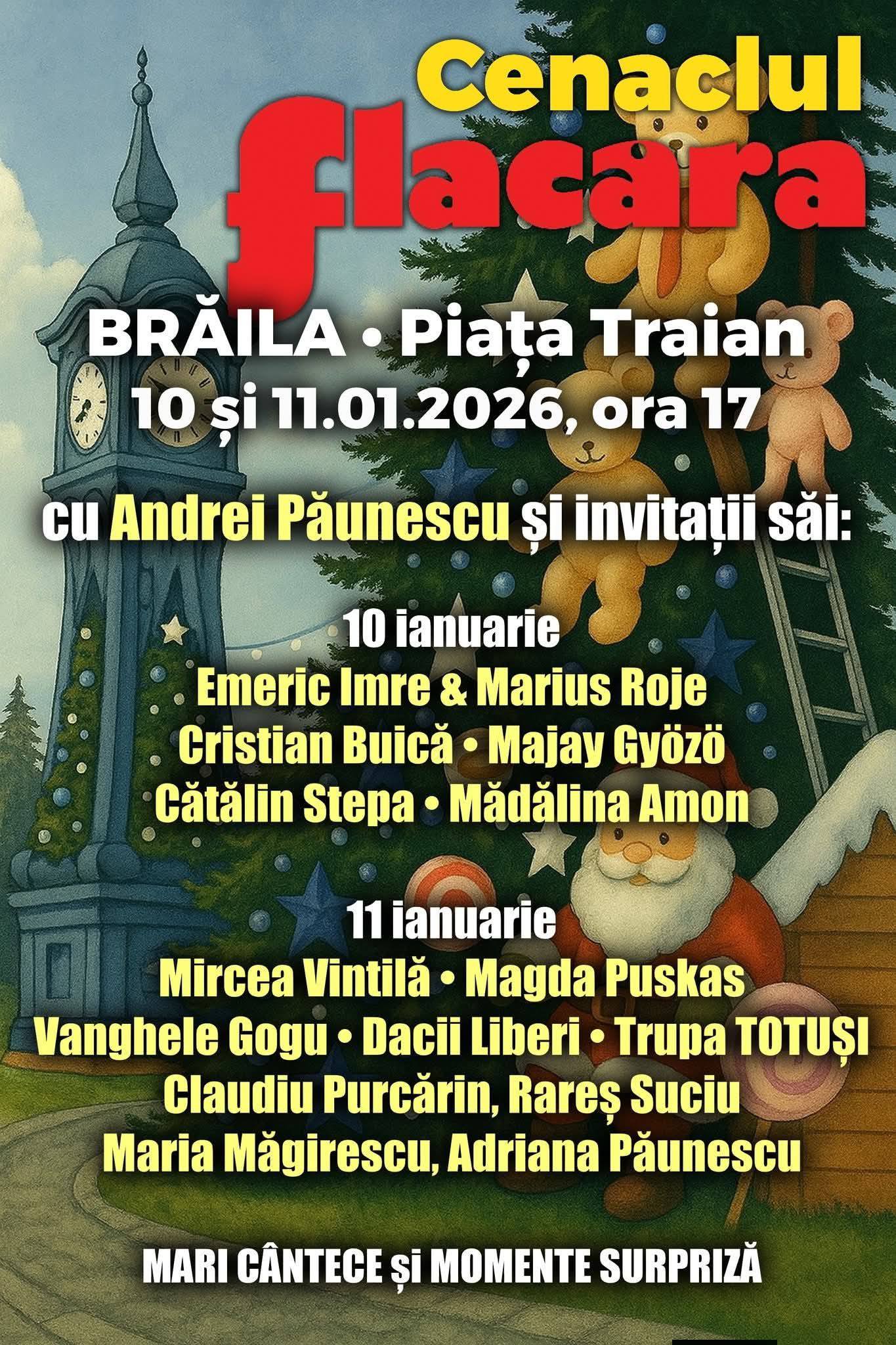 Târgul de Crăciun se va încheia cu două spectacole speciale în Piața Traian. Andrei Păunescu și invitații săi, foști membri ai Cenaclului Flacăra, vor susține în acest sfârșit de săptămână două concerte extraordinare pe scena amenajată în Piața Traian.