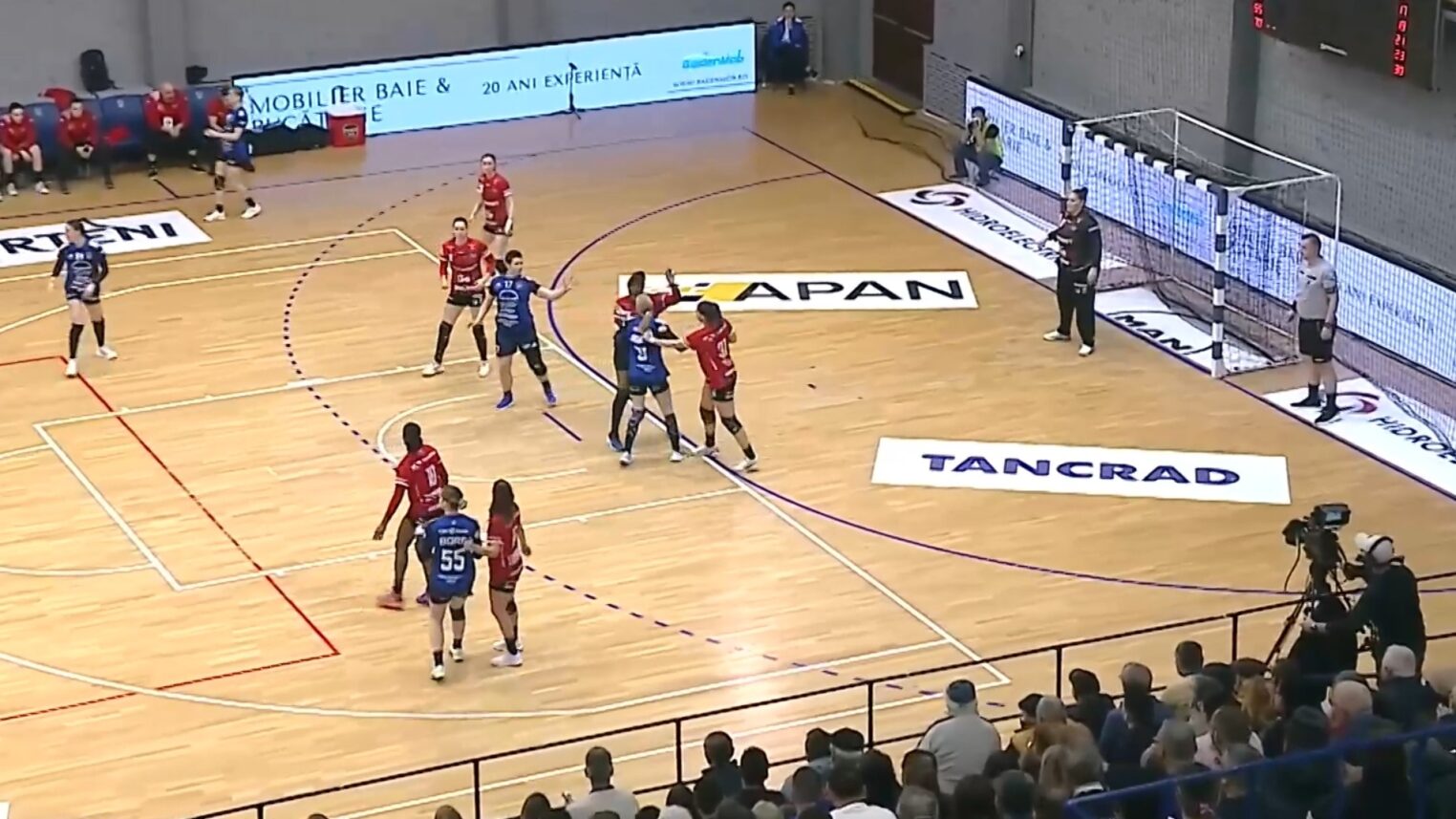 În minutul 15, la scorul de 6-8, Jensen Soren Norgaard a cerut primul time-out, după care a introdus-o pentru prima dată pe teren pe Katarina Jezic, jucătoare care a lipsit din aprilie anul trecut, din cauza unei accidentări. Însă la prima ei situație de a marca a ratat și Ostase a marcat pentru 6-9. În minutul 24 Nusser a marcat de la 7 metri, după care Jezic a marcat primul ei gol din actualul sezon după o pasă pe semicerc primită de la Roșu. Până la pauză s-a menținut diferența de 3-4 goluri, iar la finalul primelor 30 de minute ale meciului scorul a fost 11-15, cu un gol marcat de Nusser, în ultima secundă, din aruncare de la 7 metri. În prima repriză elena Șerban a avut 6 parade, din 20 de aruncări la poarta apărată de ea, iar Arruda a avut 5 intervenții, însă Brăila a aruncat doar de 15 ori pe poartă.