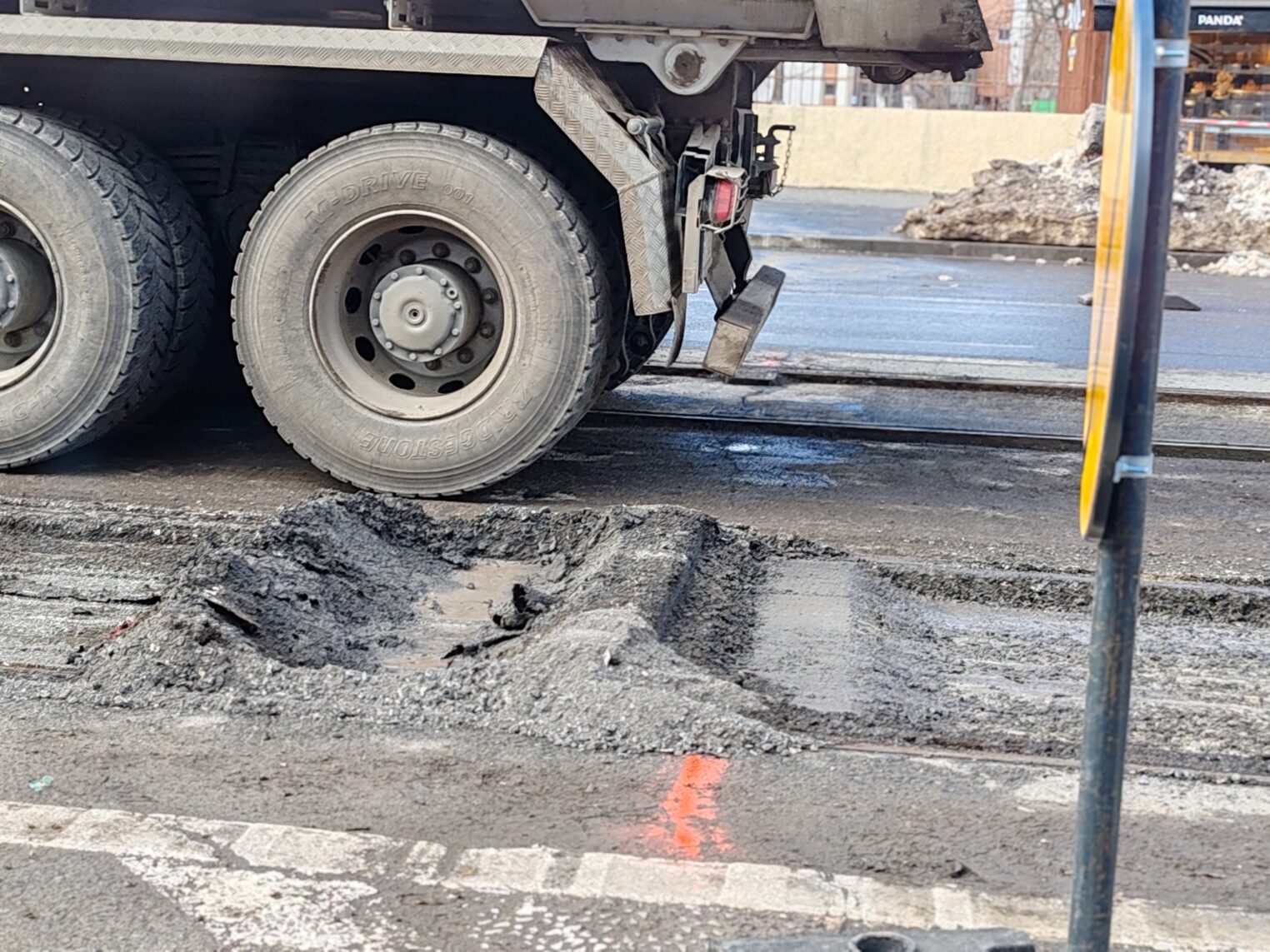 Pe Bulevardul Dorobanților se astupă fisurile din asfalt de pe liniile de tramvai, prin turnarea de covor asfaltic, pe linii plus 1,2 metri în lateral. Pe perioada lucrărilor circulația tramvaielor este oprită. Lucrările sunt executate de firma Concivia în cadrul contractului multianual de întreținere străzi.
