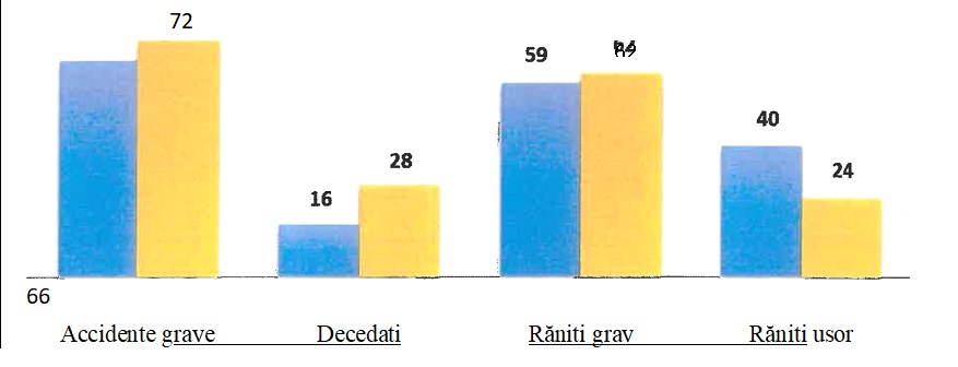 A scăzut numărul persoanelor decedate în accidente grave, de la 28 în anul 2024, la 16 în anul 2025 (-42.86%), precum și numărul persoanelor rănite grav în accidente grave, de la 62 persoane în anul 2024, la 59 persoane în anul 2025 (-4.84%).