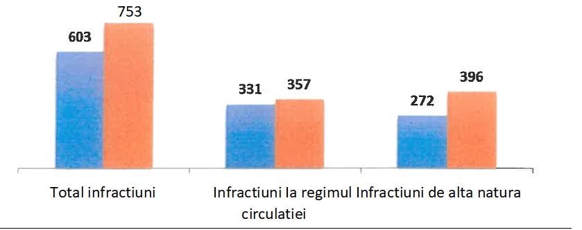 Au fost constatate 603 infracțiuni, dintre care 331 la regimul rutier și 272 de altă natură.