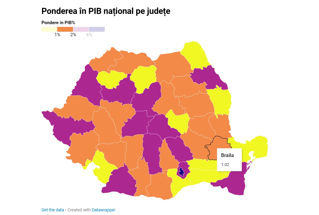 Județul Brăila are o contribuție individuală la produsul intern brut național de doar 1,02%