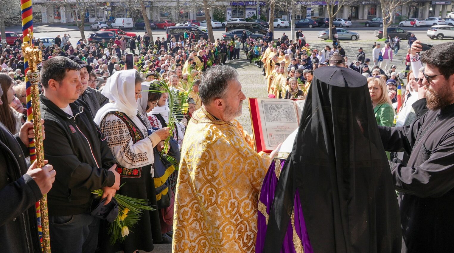 Acesta a sfinţit Icoana Intrării Domnului în Ierusalim şi a oficiat slujba de binecuvântare a stâlpărilor, după care i-a stropit cu agheasmă pe toţi credincioşii prezenţi.