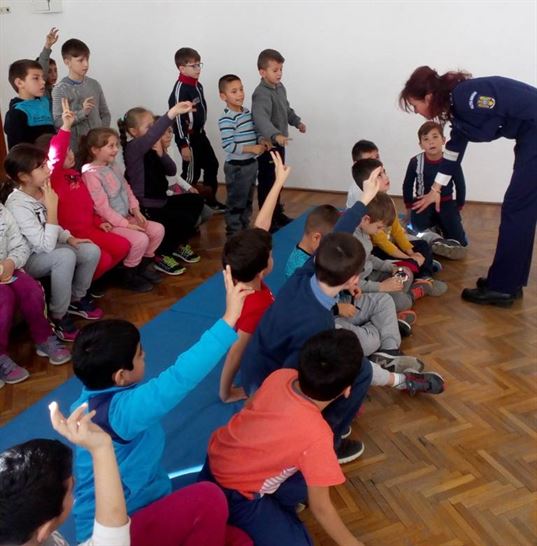 Elevii s-au întrecut în a le prezenta oamenilor legii cunoştinţele lor referitoare la locurile unde se pot da în siguranţă cu sania şi cu patinele, unde au voie să se joace cu bulgări din zăpadă, cele privind relaţionarea cu persoanele necunoscute şi utilizarea în siguranţă a reţelelor de socializare, precum şi privind efectele pe care le poate avea folosirea, fără supravegherea adulţilor, a articolelor pirotehnice.