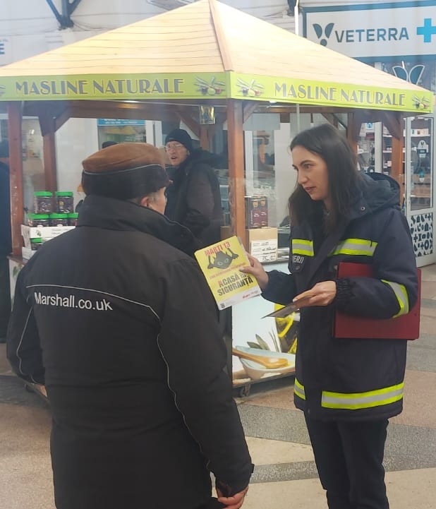 Specialiști din cadrul Inspecției de Prevenire, a Serviciului de Pregătire pentru Intervenție și Reziliența Comunităților, sprijiniți de voluntari din cadrul programului ”Salvatori din pasiune”, au distribuit materiale de informare preventivă cu tema ”Acasă în siguranță”. Materialele distribuite cuprind măsuri de prevenire şi reguli de comportare în momentul producerii unor situații de urgență în gospodărie, cum ar fi: necesitatea instalării detectoarelor de incendiu, reguli de exploatare a mijloacelor de încălzire și a instalațiilor electrice